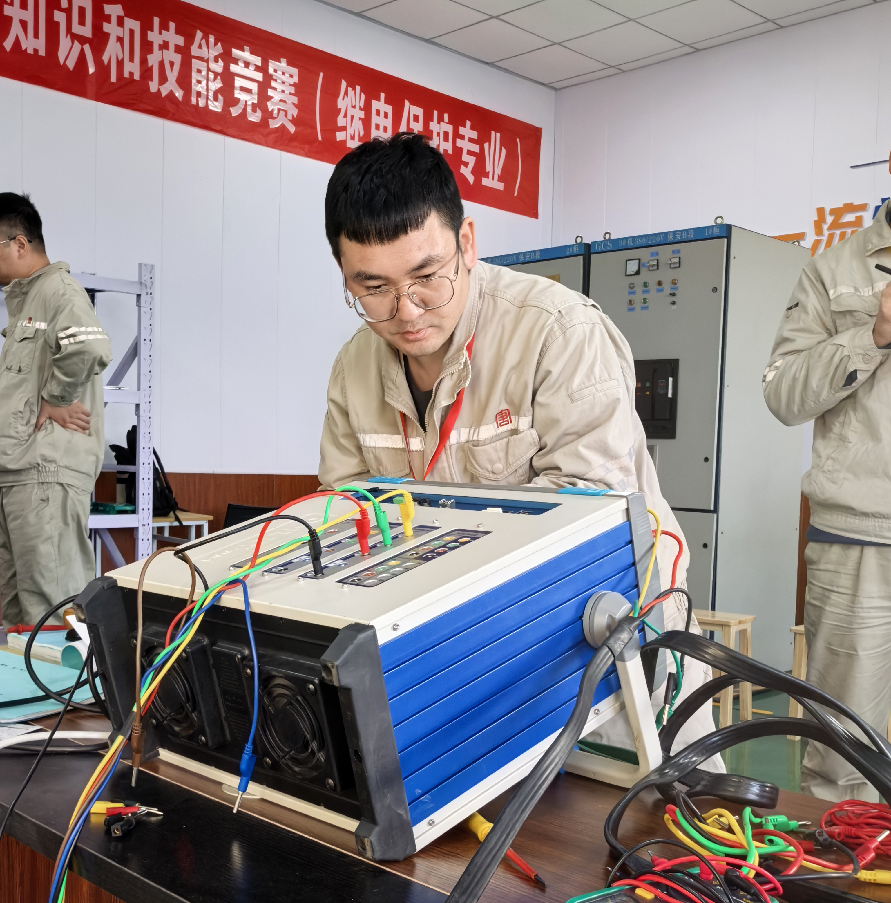 得知省公司将举办继保专业技能竞赛,王辉将其视为检验自我、提升技能的宝贵机会。备赛期间,他制定了周密的强化训练计划。在理论深化上,白天忙完日常巡检消缺任务后,下班回到家再强化理论复习到深夜,钻研保护原理说明书、装置调试报告和分析故障录波图,对照二次回路图纸查清柜内端子排的每一根线的用途,不放过任何一个技术细节。系统重温《继电保护和安全自动装置技术规程》、《电力系统继电保护题库》及最新国家行业标准,梳理知识体系,攻克难点疑点,将保护原理吃透记牢。在技能提升上,他不仅满足于规程熟悉,更聚焦于“故障分析”与“动手实操”两大核心。他广泛收集典型故障案例,深入剖析故障成因、保护动作行为及暴露问题,总结处理要点。同时,他充分利用2号机大修时机,反复进行模拟故障处理演练,从故障现象设置、信息提取判断,到处理步骤执行、报告规范填写,每一步都力求精准、快速、规范。通过高强度的针对性训练,他的故障研判速度、动手操作能力和应急处置水平得到了显著提升,最终在竞赛中沉着应战,凭借过硬的理论基础和精湛的实操技能,展现了应有的专业水准,赢得了评委的认可,取得了好成绩。
