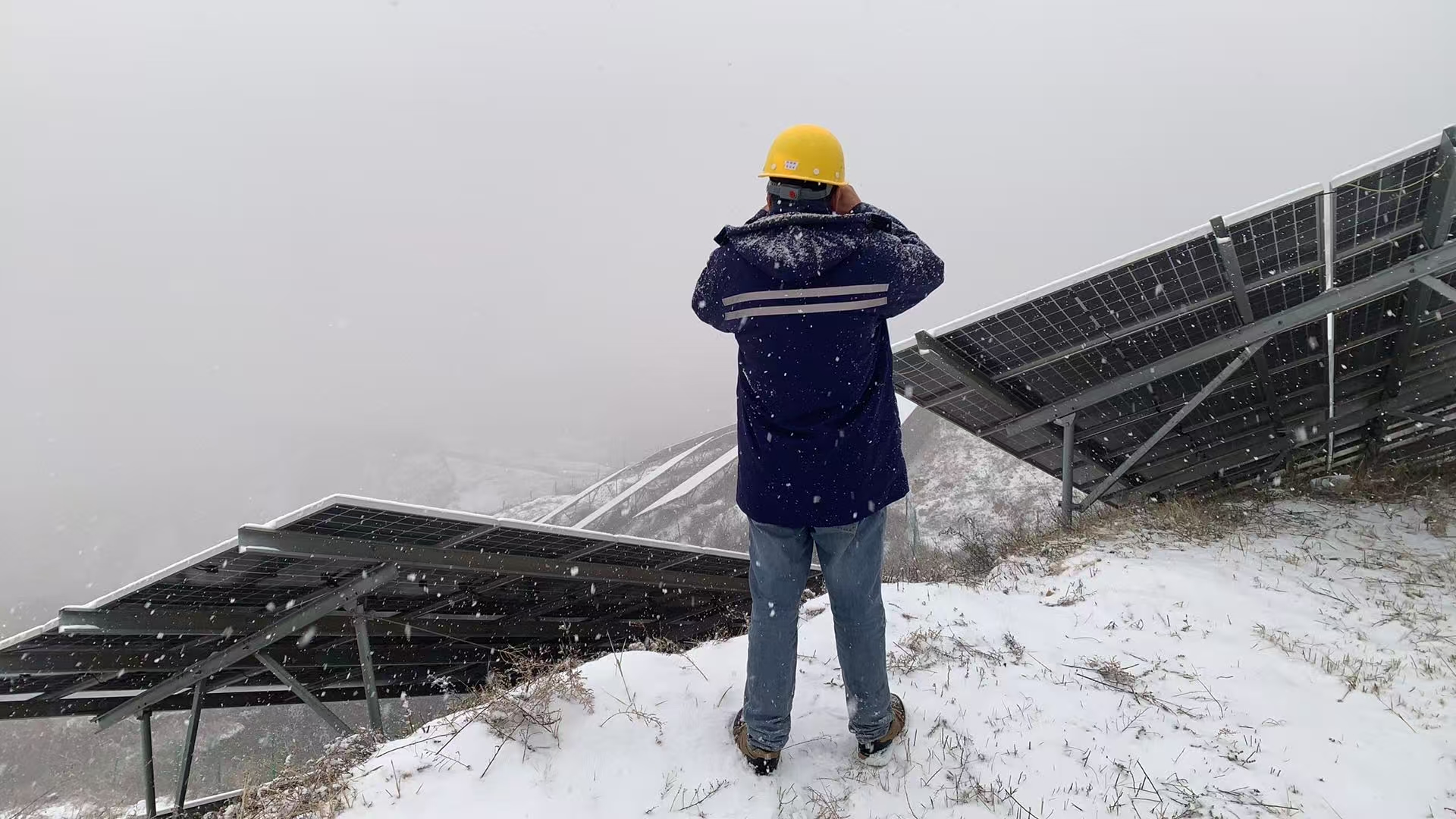 针对本轮寒潮极端天气,院科光伏电站迅速部署防寒防冻专项工作,以“早排查、早防范、早处置”为原则,全面开展设备及线路安全检查。重点对光伏组件、逆变器、汇流箱等核心设备进行防寒防冻隐患排查,详细检查设备密封性能、保温措施及电气连接点状态,严防低温冻害导致设备故障;同时加强光伏方阵、集电线路及配电装置的特巡特护,增加巡检频次,重点排查线路覆冰、杆塔基础、绝缘子覆雪等隐患,及时清理线路通道内杂物,确保线路传输安全稳定。