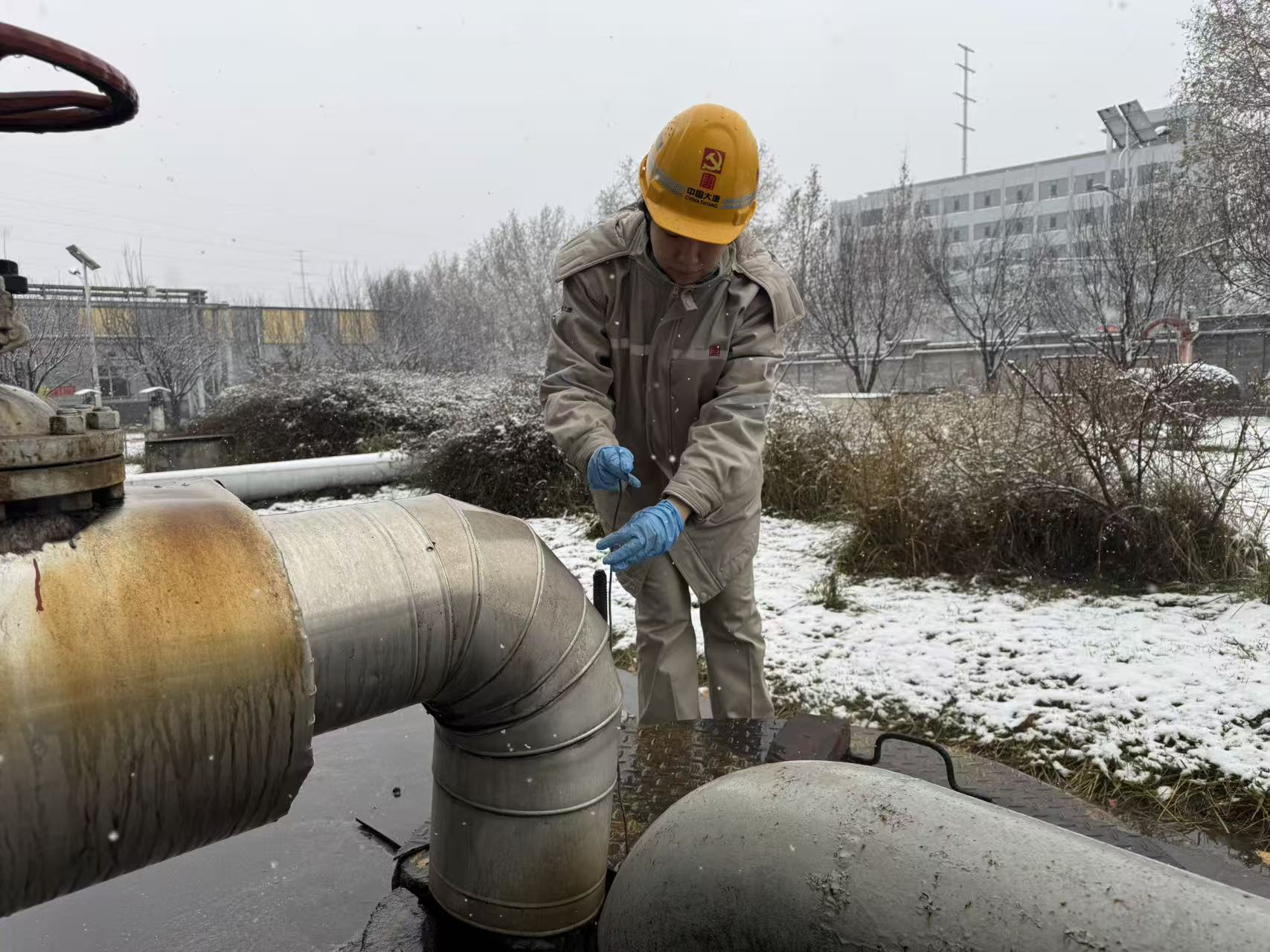 维护部热工专业迎风踏雪,对户外仪表、测点及管道保温开展专项特巡。他们俯身检查每一处伴热细节,用双手记录数据、清除覆冰,确保设备在严寒中保持“健康体温”。随时待命、迅速消缺,是他们对抗寒冬的专业姿态。