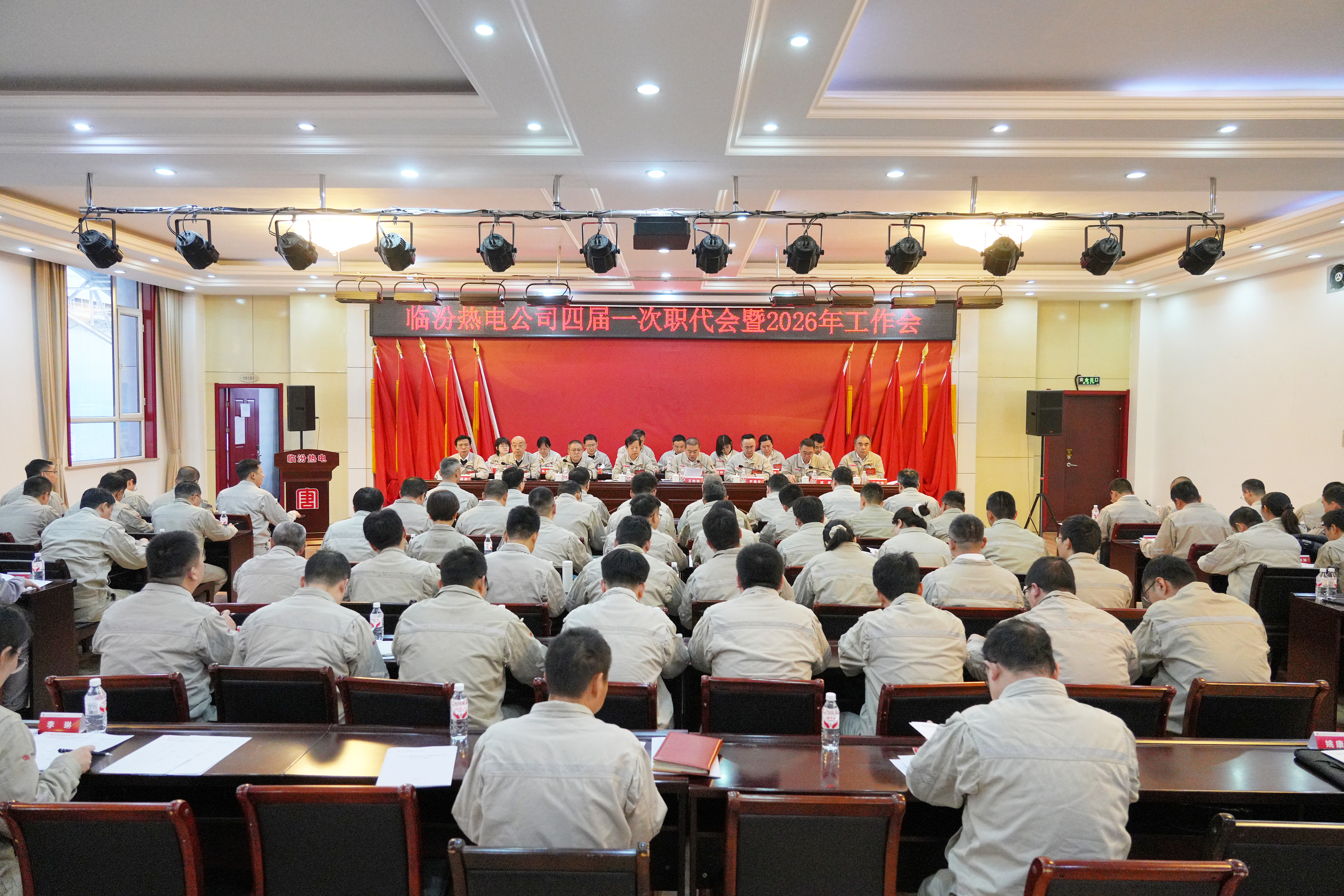 2026年1月28日,大唐临汾热电公司召开四届一次职代会暨2026年工作会,传达上级工作工作会议精神,总结2025年和“十四五”成绩经验,明确“十五五”总体思路和主要任务,安排部署2026年重点工作,团结动员全体干部职工进一步统一思想、坚定信心,乘势而上、接续奋斗,为奋力谱写“卓越大唐新晋电”临电新篇章而努力奋斗!