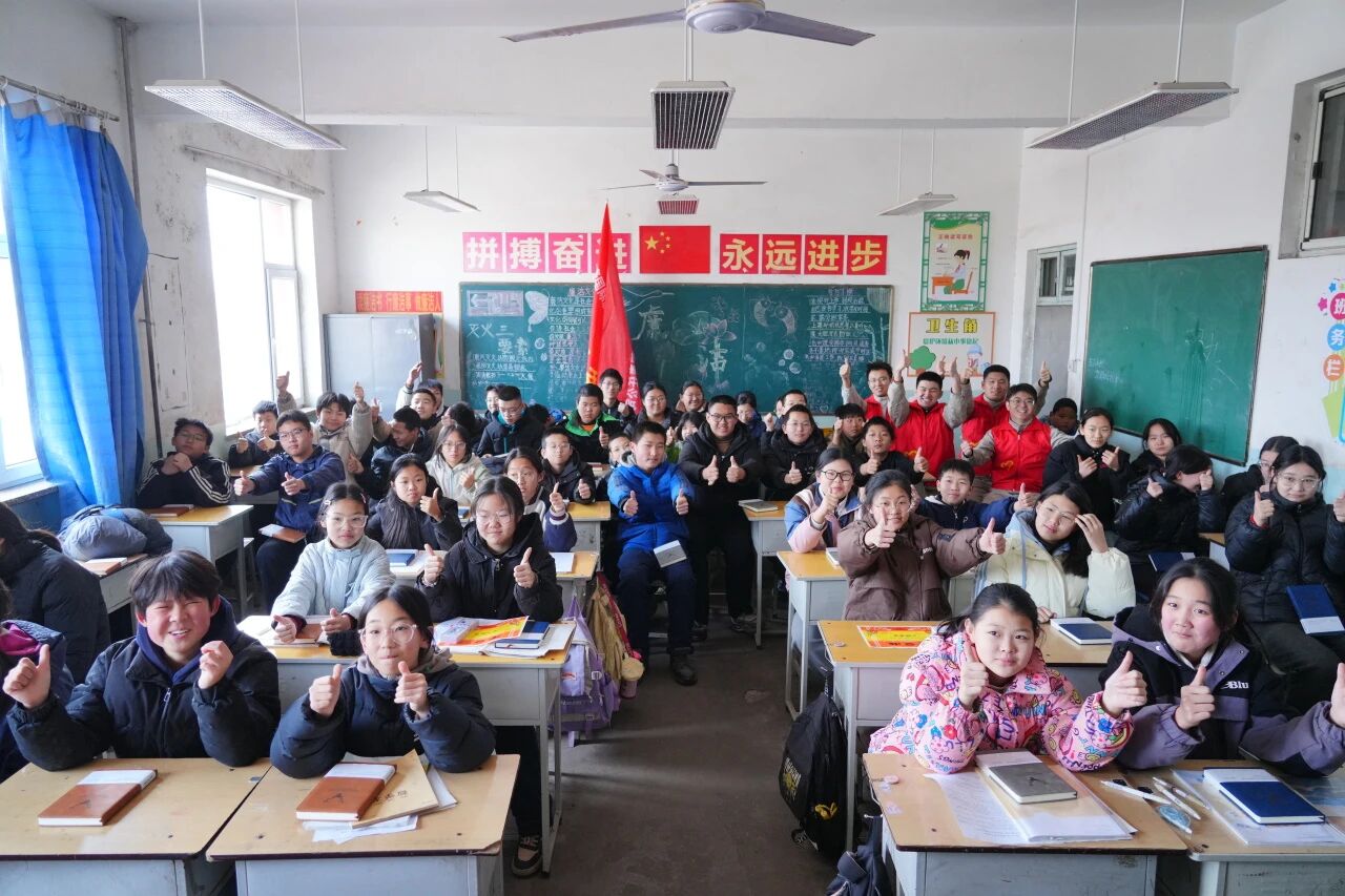 上午10点,教学楼前举行简朴温馨的奖学金颁发仪式。志愿者将爱心奖学金、笔记本、小马布偶,逐一送到三个年级期末成绩优异的孩子手中。随后,志愿者与七至九年级学生开展“成长感恩・砥砺前行”主题班会。志愿者王岩以“山海寻梦,不觉其远;前路迢迢,阔步前行”开场,分享自己从汾河学校学子到大唐员工的追梦历程,朴实话语如春风化雨滋润少年心田。
