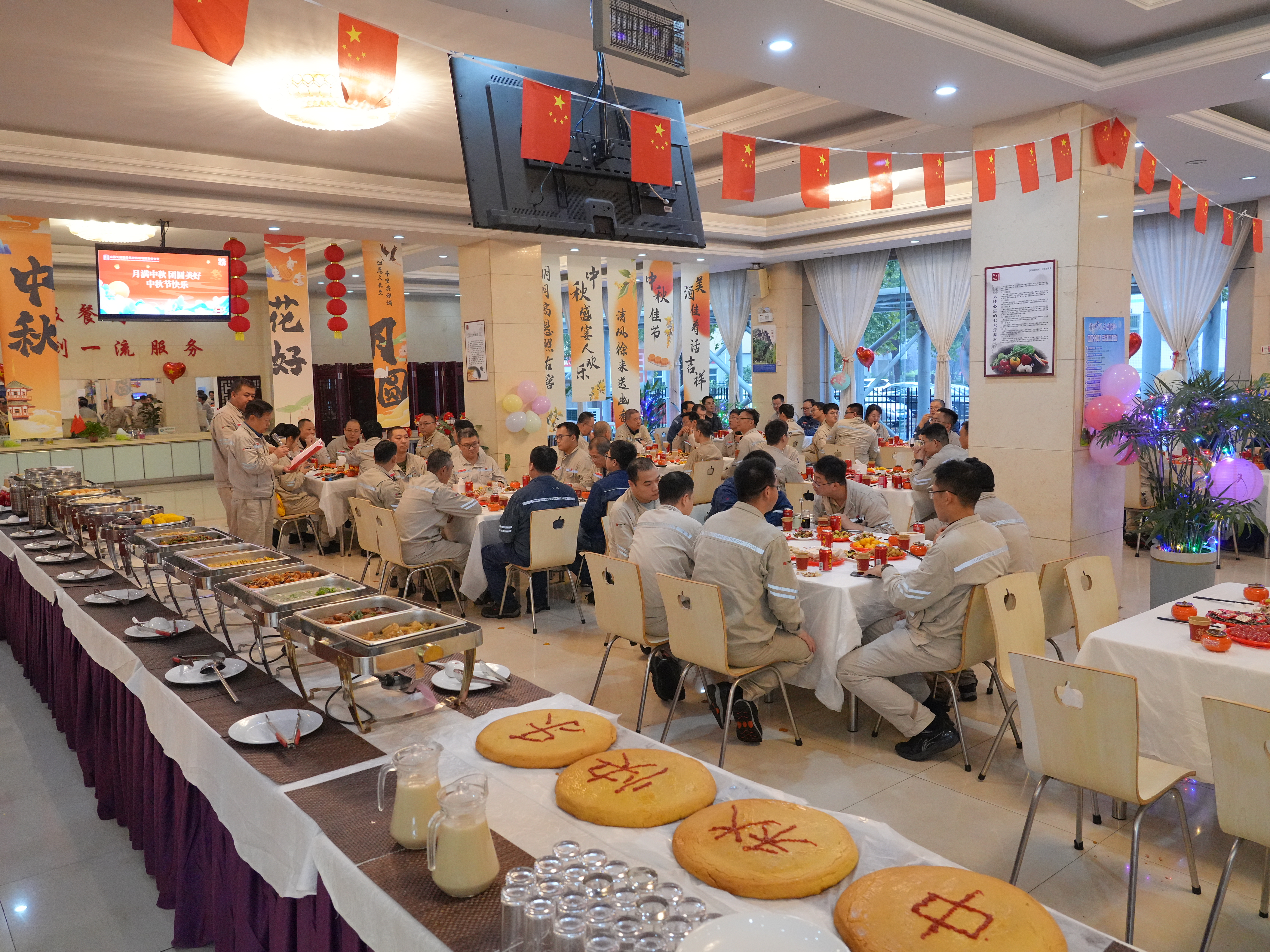 当国庆的“中国红”遇上中秋的“圆满月”,当值班的“手电光”辉映团圆的“灯笼亮”,当大修撞上中秋,不只有月光,更有我们并肩的“星光”,致敬每一位在平凡岗位上创造不凡的临电人!中秋佳节,月圆人团圆。在保障设备正常运转、机组检修的重要阶段,公司在职工餐厅精心举办了一场“月满中秋 人满团圆 同心聚力 共赏明月”的中秋团圆晚宴,向每一位奋战在岗位一线的干部职工致以最诚挚的节日问候。