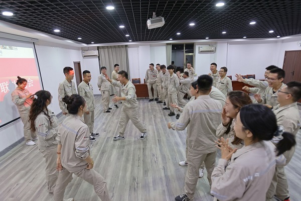 8月19日晚19:30,该公司举办新入职大学生联欢会,新老职工们欢聚一堂,《致光明使者》《我爱上班》等一个又一个形式多样、异彩纷呈的演出节目,为观众们带来了幽默风趣、激情四射的视觉享受。游戏环节中,“抱团”让新老职工打破了陌生和拘谨,“你比我猜”更是将整场活动推向高潮,参赛者机智灵活的反应和夸张滑稽的动作以及张冠李戴的答案令人捧腹大笑。