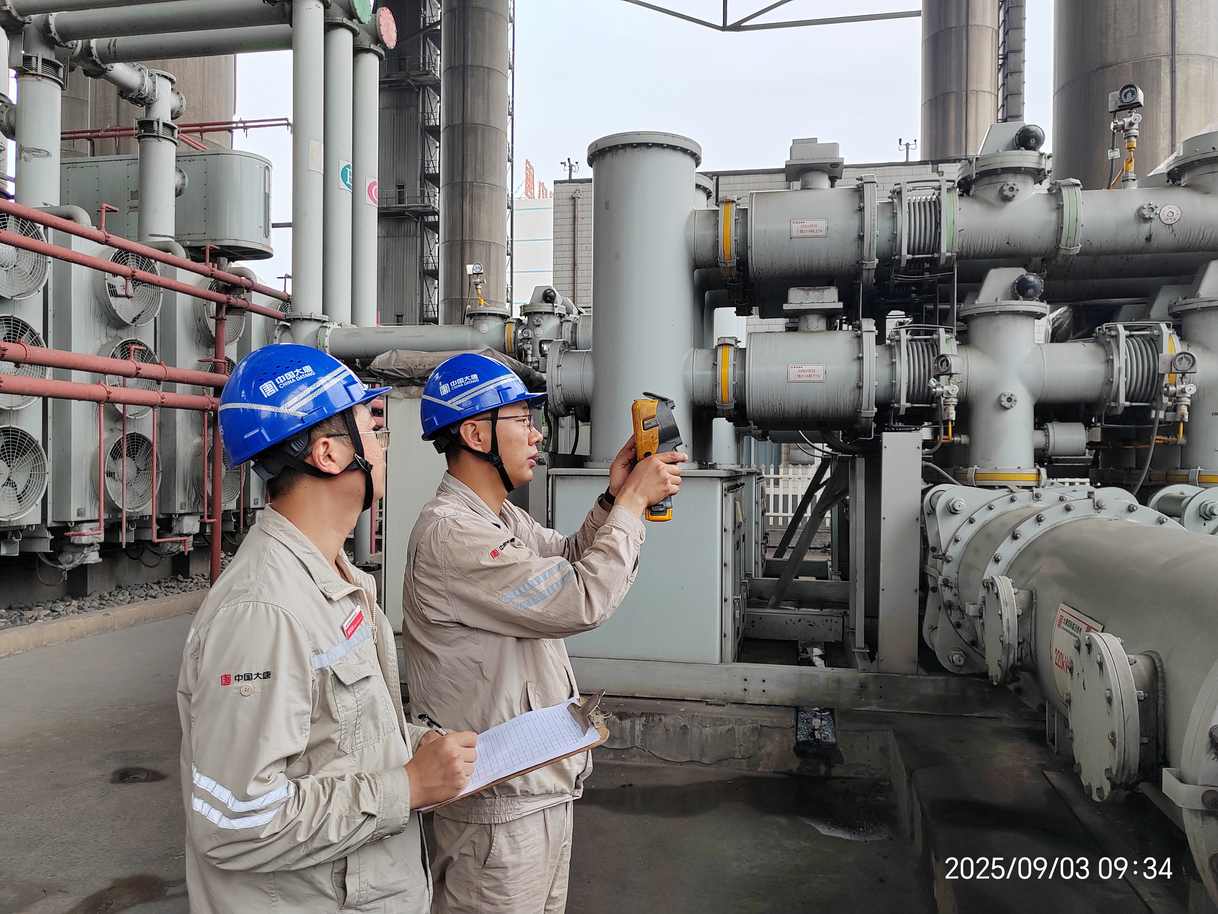 保电期间,维护部全员到岗到位,以高度的责任感和使命感落实保电各项工作任务,现场携带红外成像仪、测振仪、听针等装备奔赴各设备区域,对锅炉、汽轮机、变压器等设备开展细致巡检,不放过任何一个细微隐患,确保设备运行精准无误。全力实现“零差错、零异常、零中断”目标,为保电期间电力可靠供应筑牢坚实的设备基础,以专业和坚守为盛大阅兵保电工作保驾护航。(维护部 林敏)