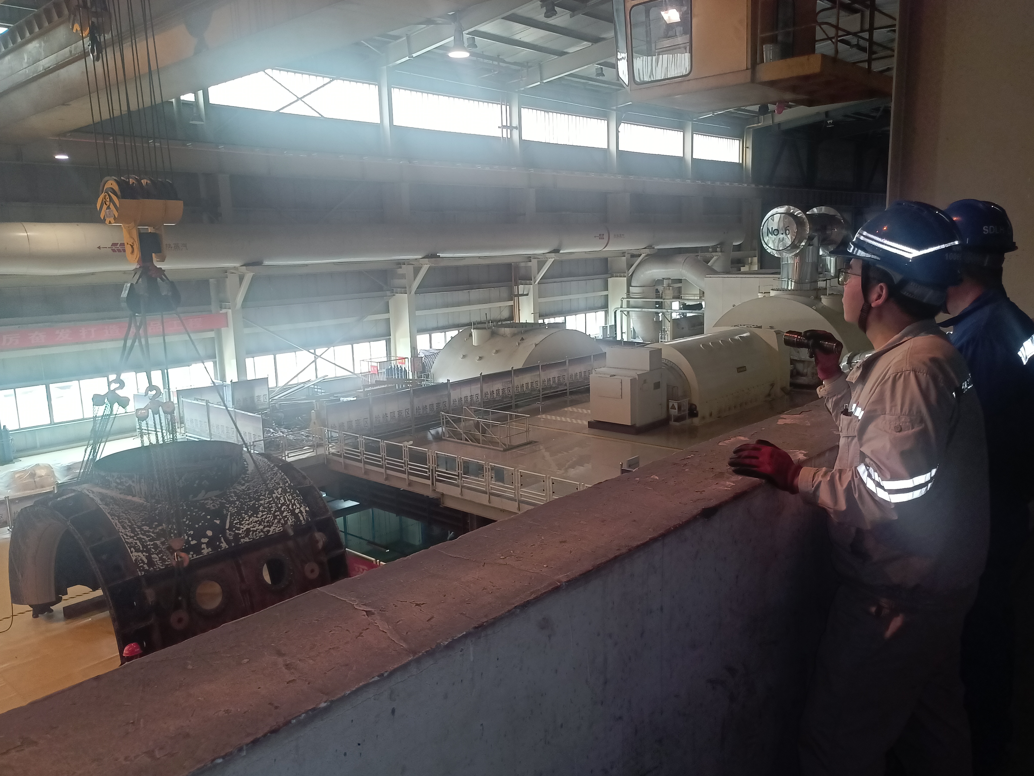 走进5号机组大修现场,平稳运行的行车正在高效转运物资,精准起落的电动葫芦正在有序吊装配件,处处呈现出一派繁忙有序、欣欣向荣的景象。(周运信)