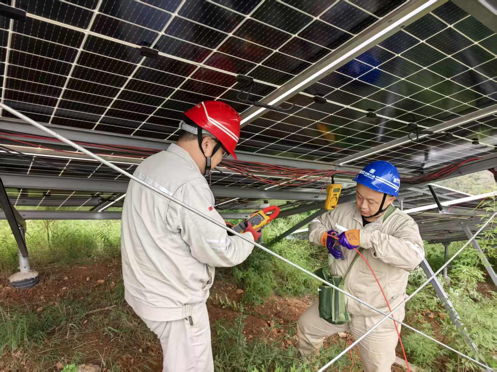 此外,现场巡查发现,光伏区内杂草生长茂盛,部分MC4插头被杂草缠绕,易在清晨结露受潮,导致部分逆变器无法按时启动。针对此问题,电站同步组织人员对高大杂草进行了集中清理,并对MC4插头开展了专项检查与维护,有效消除了这一潜在风险。