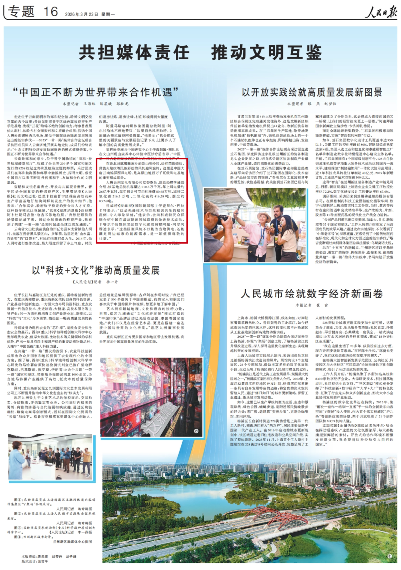 今年3月23日,人民日报以《共担媒体责任 推动文明互鉴》为题,对大唐云南锦屏西风电场再次进行了报道。
